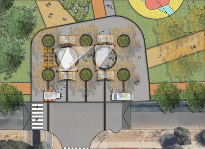 Además, se definen cuatro plazas duras que se superponen al recorrido principal. Estas plazas están asociadas a puntos de conexión del Parque con la población Huamachuco y el conjunto habitacional Cerros de Renca (Viviendas SERVIU). Las plazas se han diseñado para permitir flexibilidad de usos de manera de acoger diversas actividades esporádicas de la comunidad tales como; ferias libres, eventos, venta de artesanías locales, fiestas comunitarias, etc .